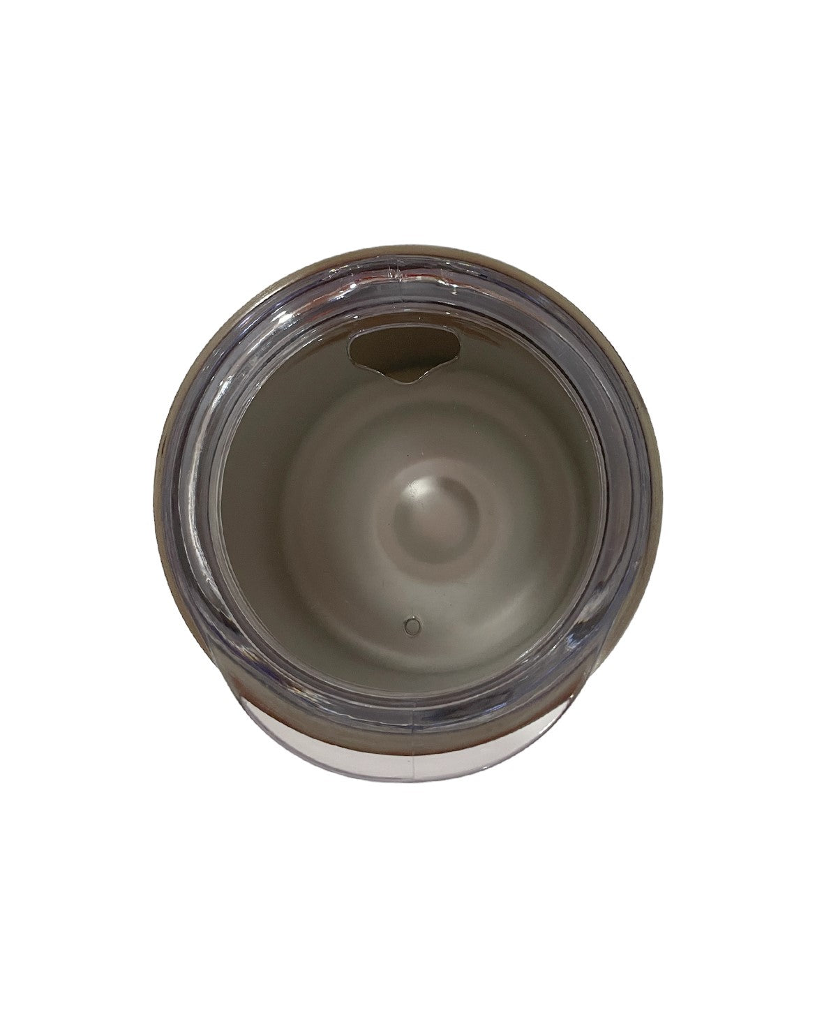 11 oz. double wall brushed stainless steel stemless BYOB tumbler. Iridescent finish, stainless steel outer with a stainless inner. Clear Tritan plastic push on, sip through lid. 5" tall.